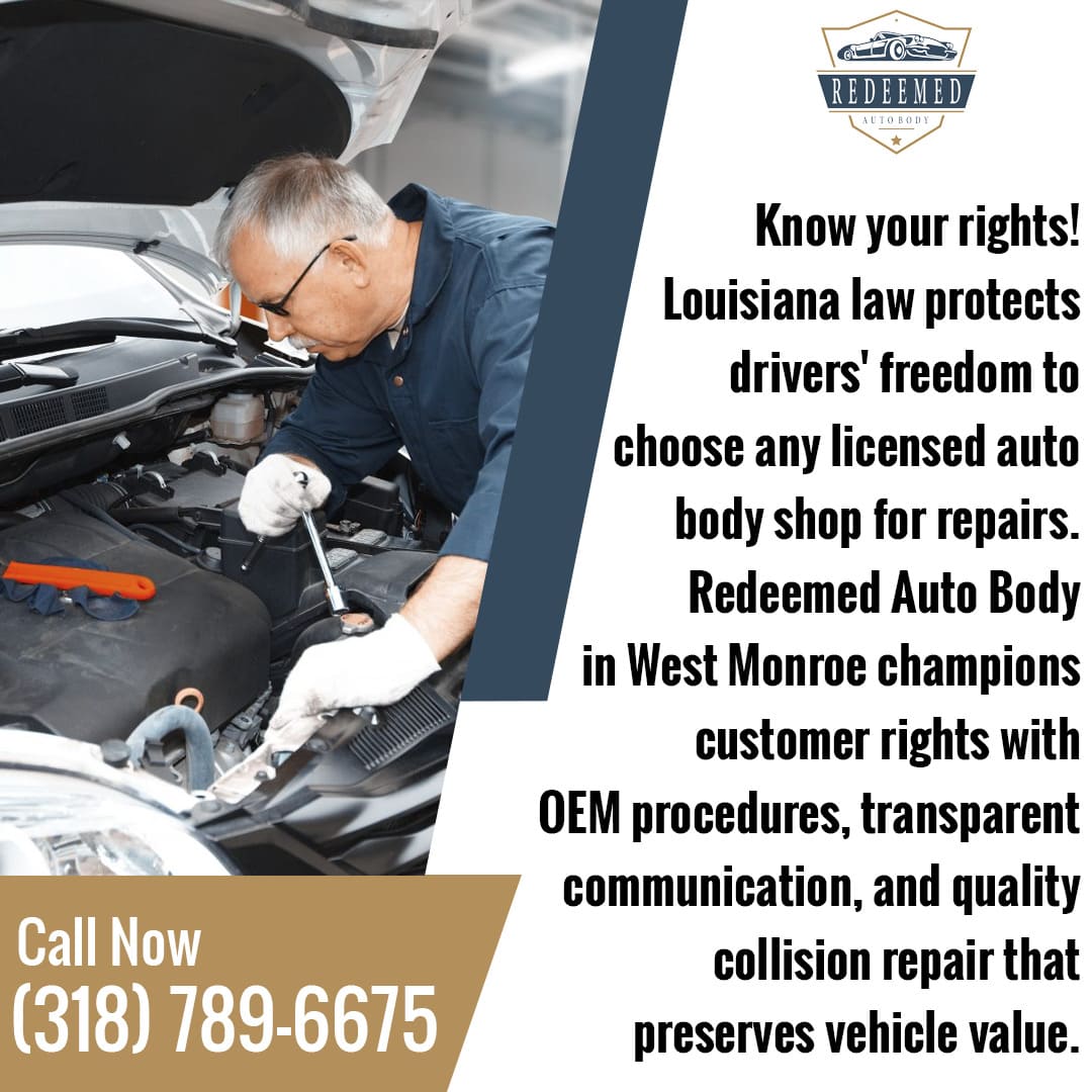 Louisiana law protects your right to choose where your car is repaired, yet insurers often pressure drivers toward preferred shops. At Redeemed Auto Body in West Monroe, LA, we prioritize your safety with OEM procedures, transparent communication, and limited lifetime warranties, proving that not all auto body repair services are the same.